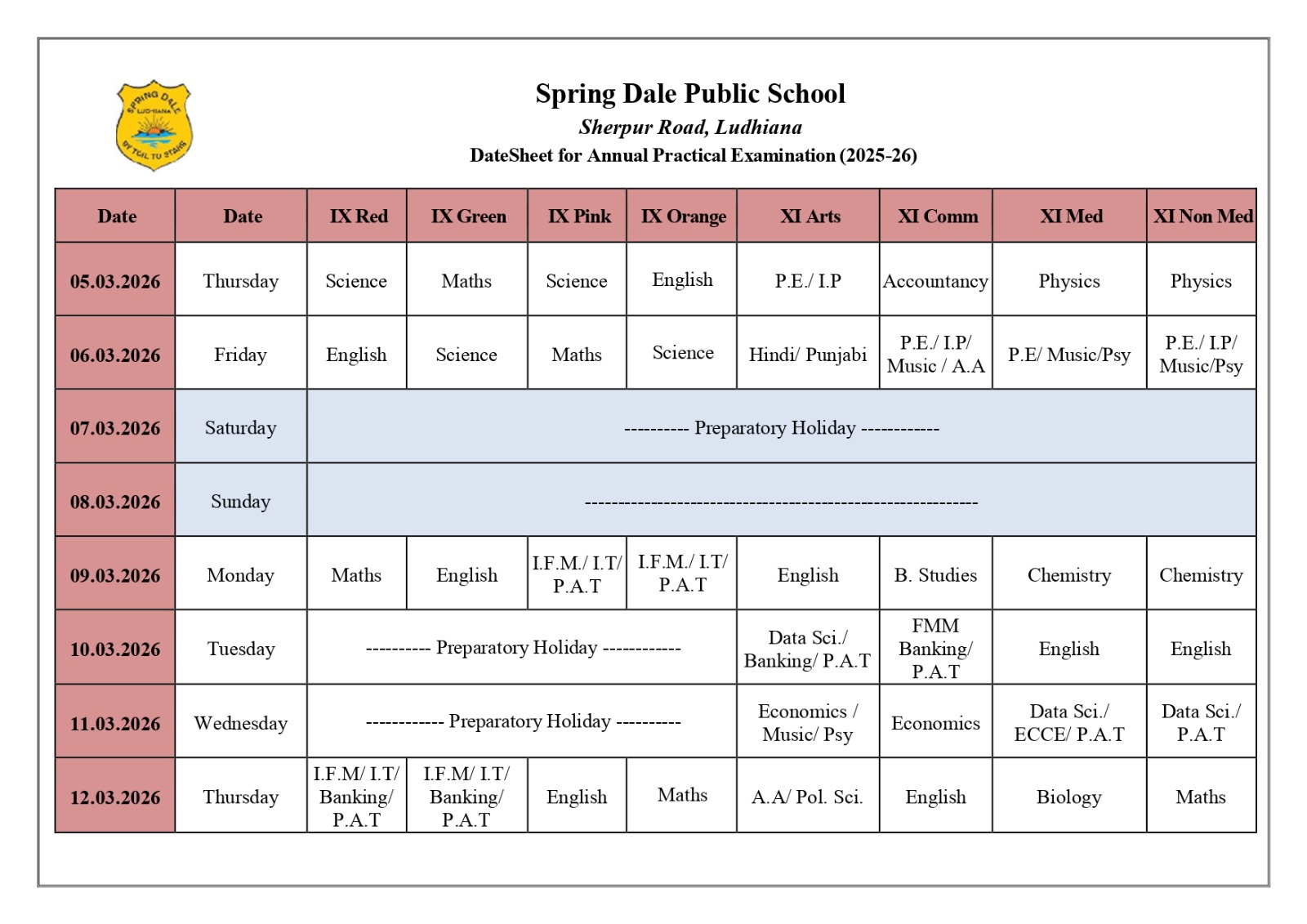 Datesheet/Schedule
